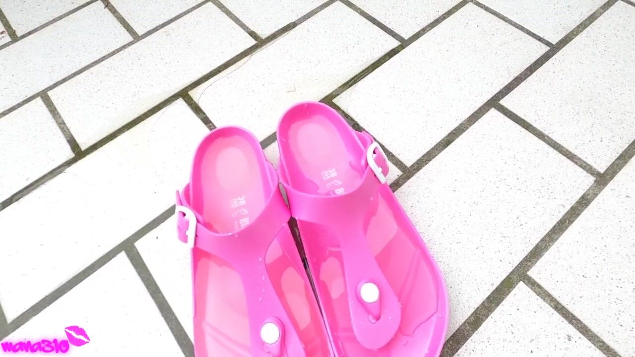 Sexy Teen Girl Masturbates on the Balcony and Squirts on her Birkenstock Shoes