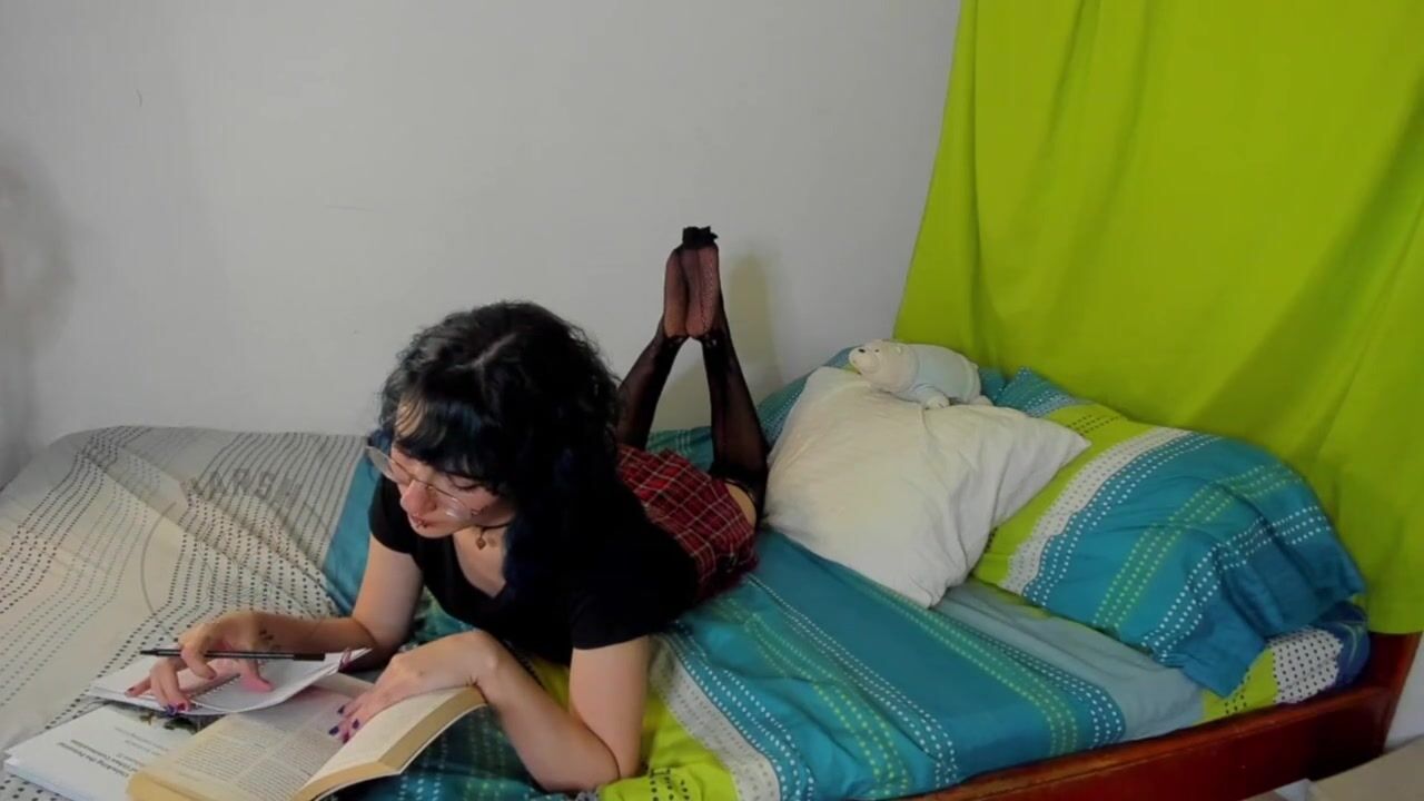 Schoolgirl tranny fucks classmate with tattooed dick! ANAL gapes, Cum covered ass