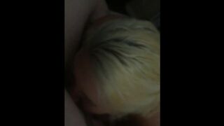 Dutch girl with needle pierced tits sucks cock and gets his cum in her eye