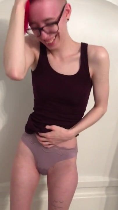 Schoolgirl tranny fucks classmate with tattooed dick! ANAL gapes, Cum covered ass
