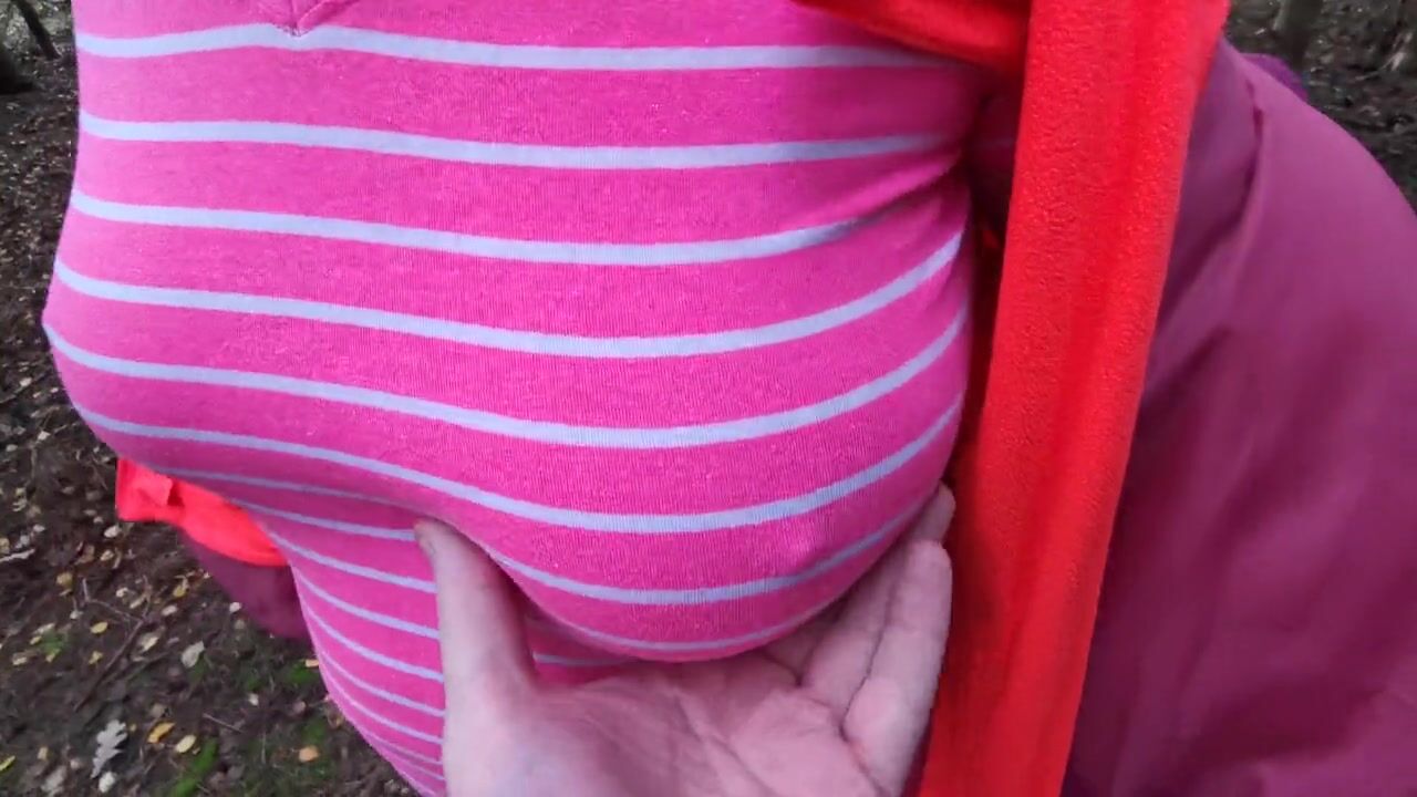 Slap her tits in fir forest