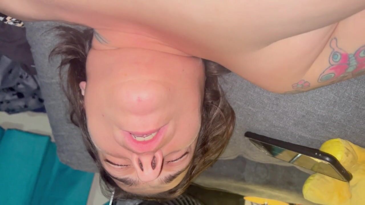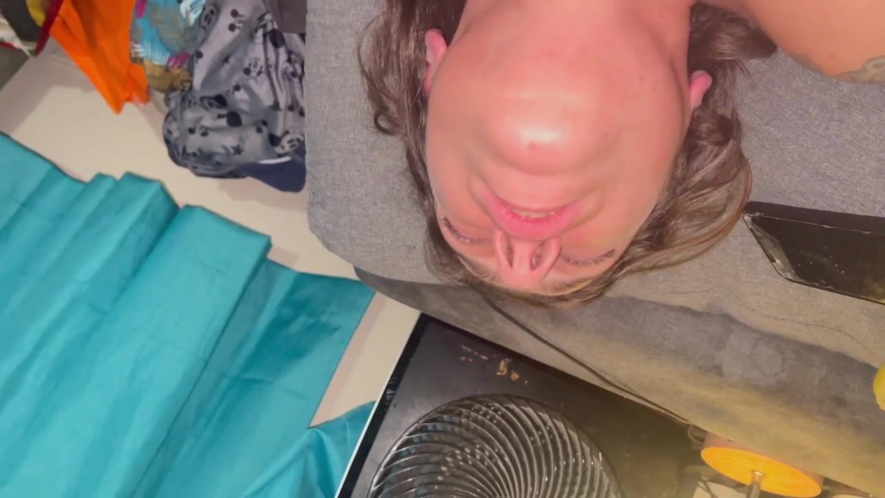 Schoolgirl tranny fucks classmate with tattooed dick! ANAL gapes, Cum covered ass