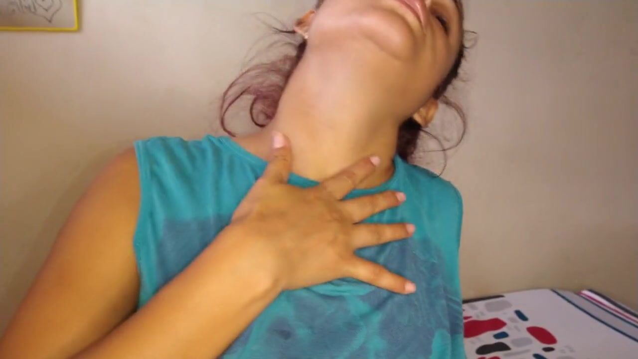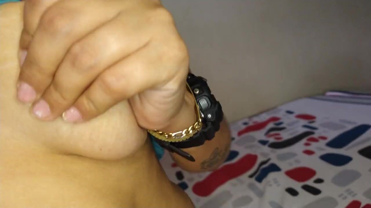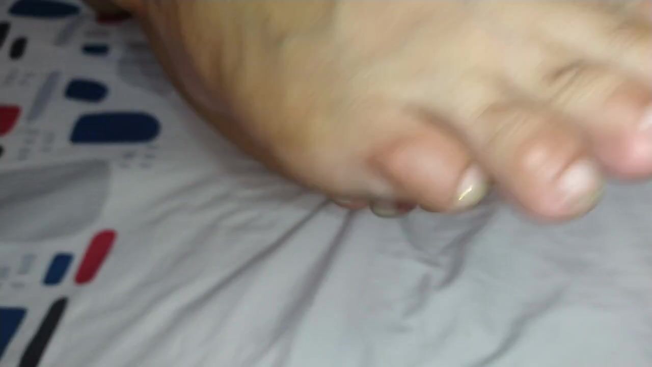 soles playing and feet fetish while massaging my tits and close up mouth fetish