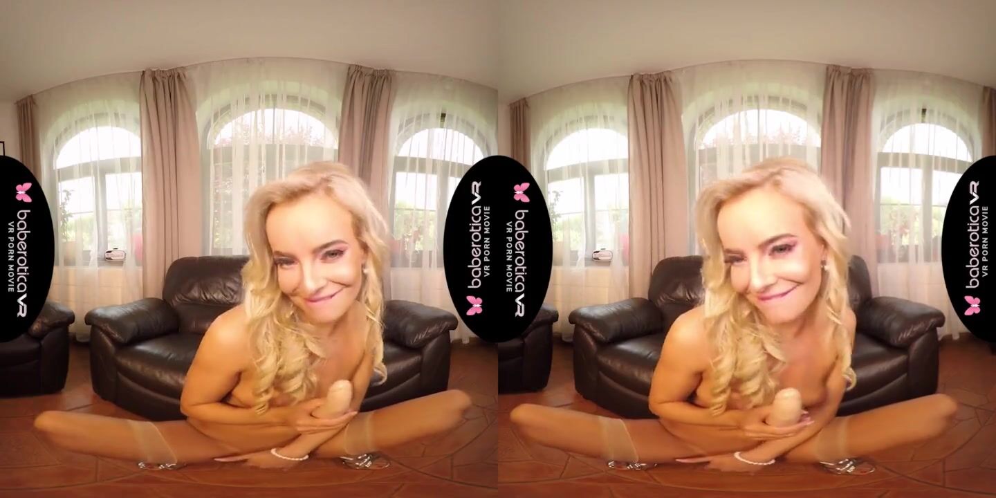 Solo blonde lady, Victoria Pure is masturbating, in VR