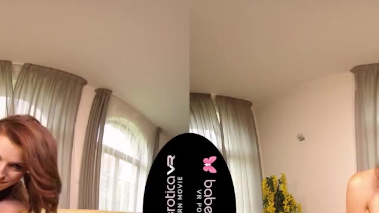Solo redhead, Victoria Daniels drills her pussy, in VR