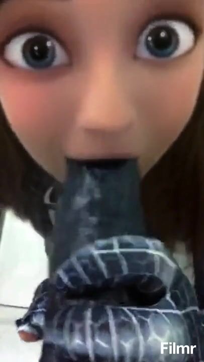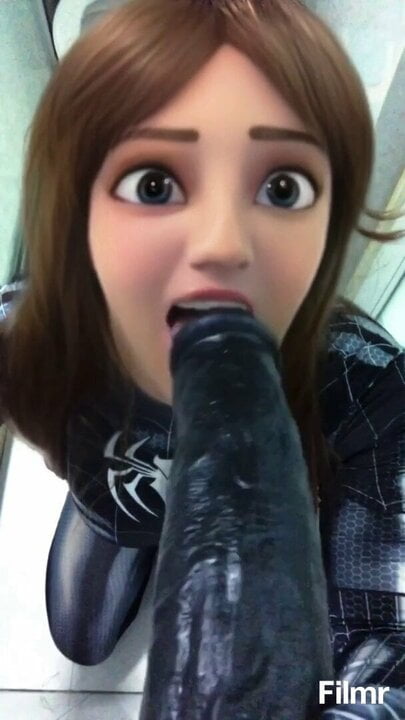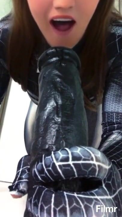Spidergirl trying to deep throat a massive black dildo.