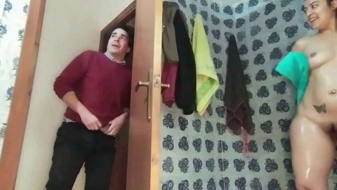 Spying on my stepsister in the shower catches me and ...