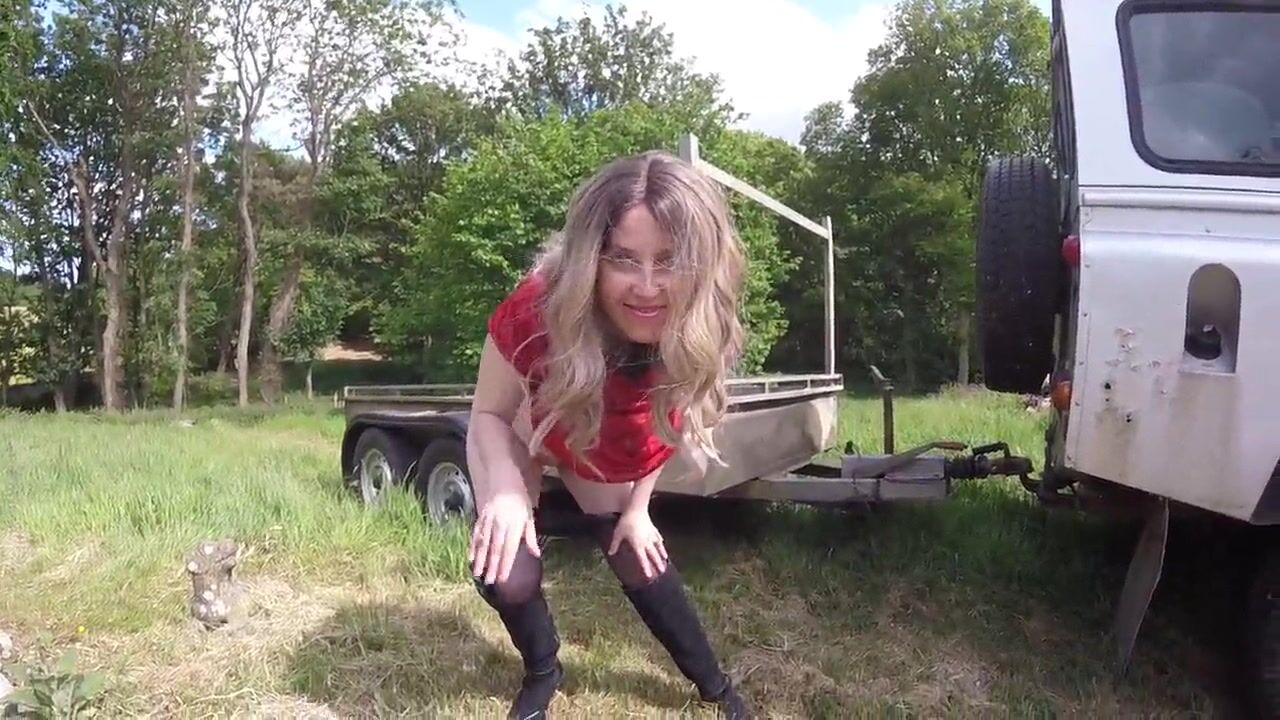 Star Trek Cosplay Blonde Ensign Haley Outdoors in pantyhose
