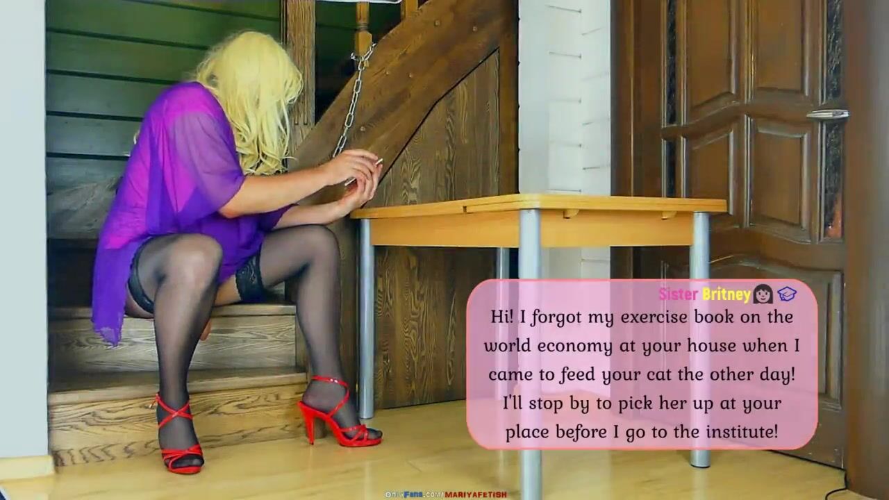 Step SISTER CAUGHT Step BROTHER CHAINED in WOMEN'S CLOTHES, BLOWJOB and FUCK Him, he CUM on SOLES