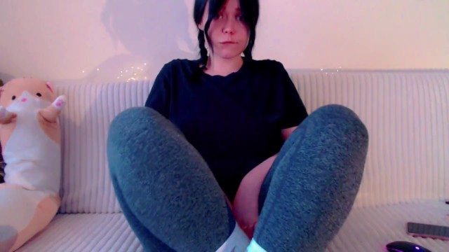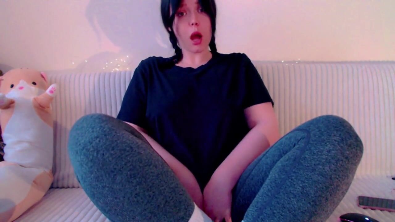 Step sister in leggings takes an orgasm