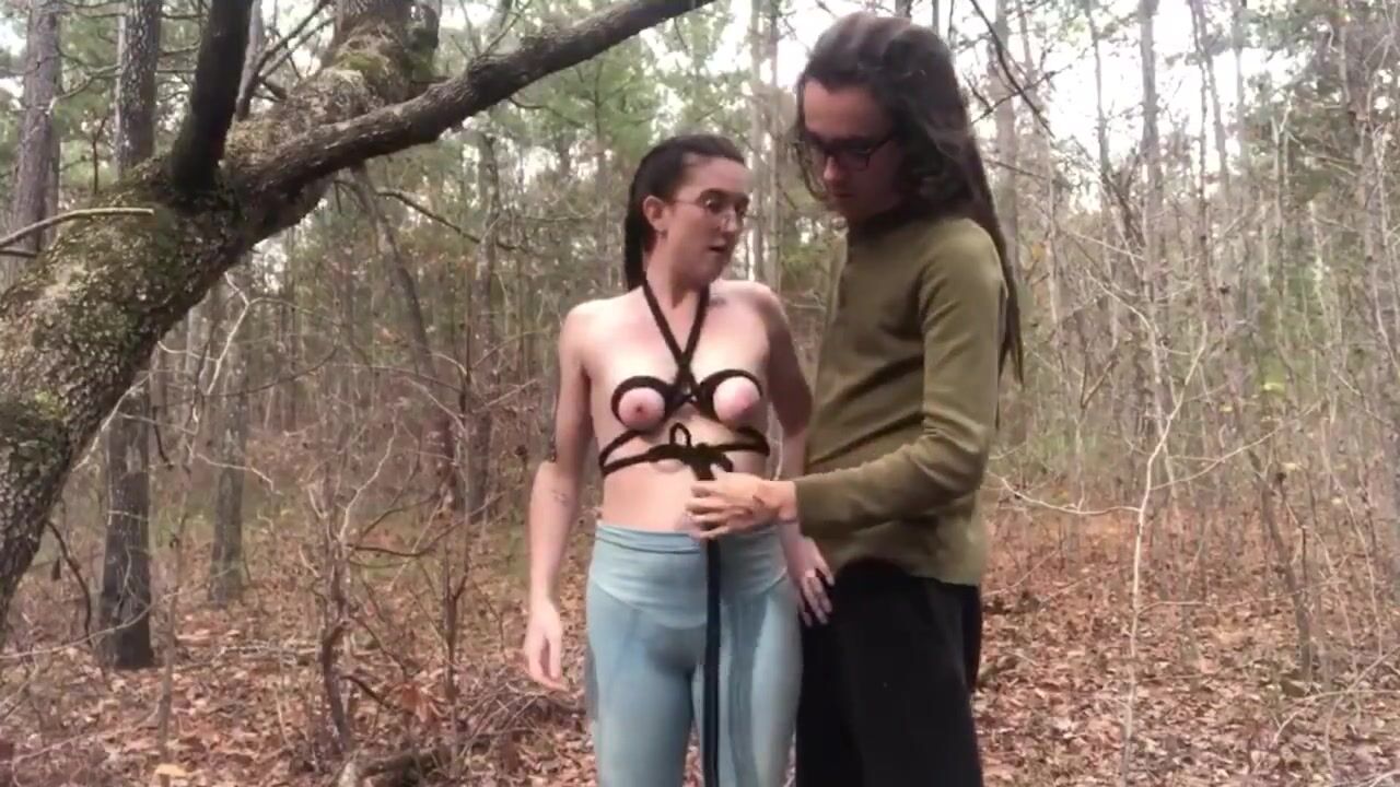Stringing her Tits up from a Tree and Fucking on a Public Trail