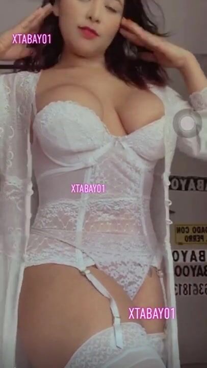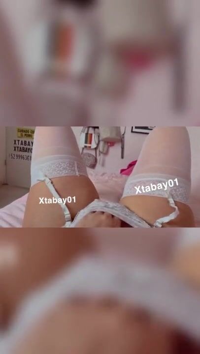 Striptease con liguero blanco y medias , reaccionando a los videos que me envían en telegram