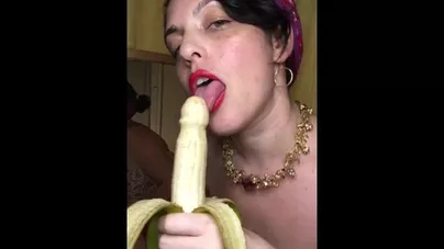 Sultry Oral Tease with Realistic Banana Cock