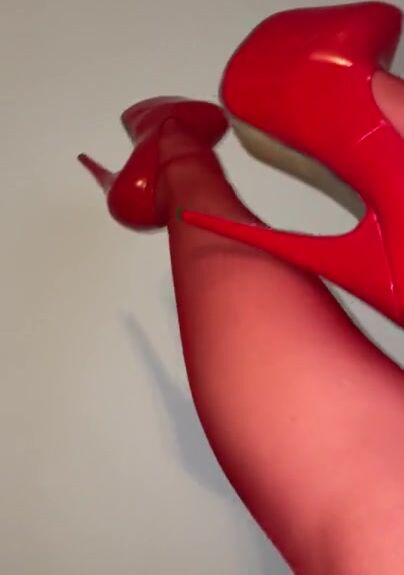 SUPER SHINY RED STOCKINGS CLOSE UP - NYLON FOOT FETISH /4K/