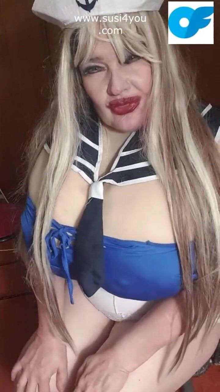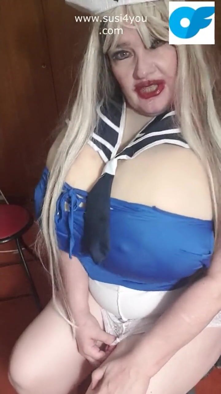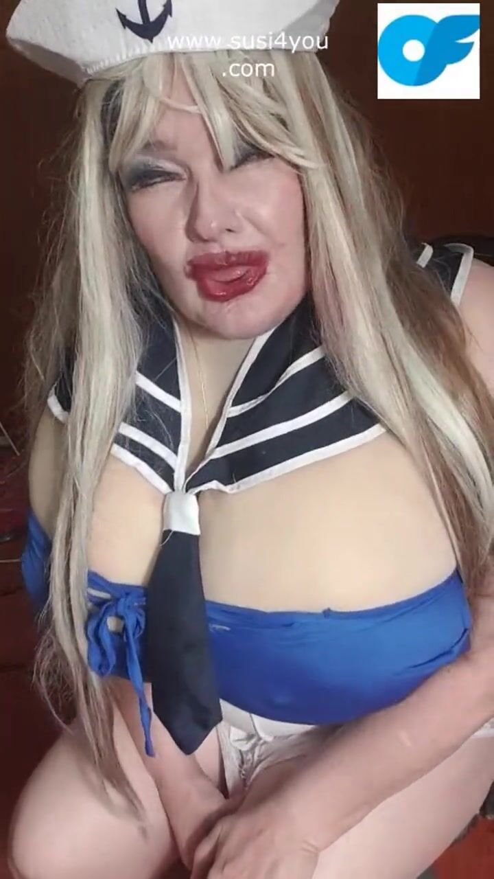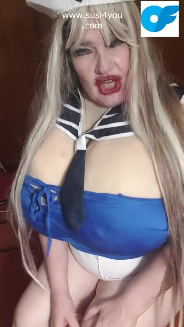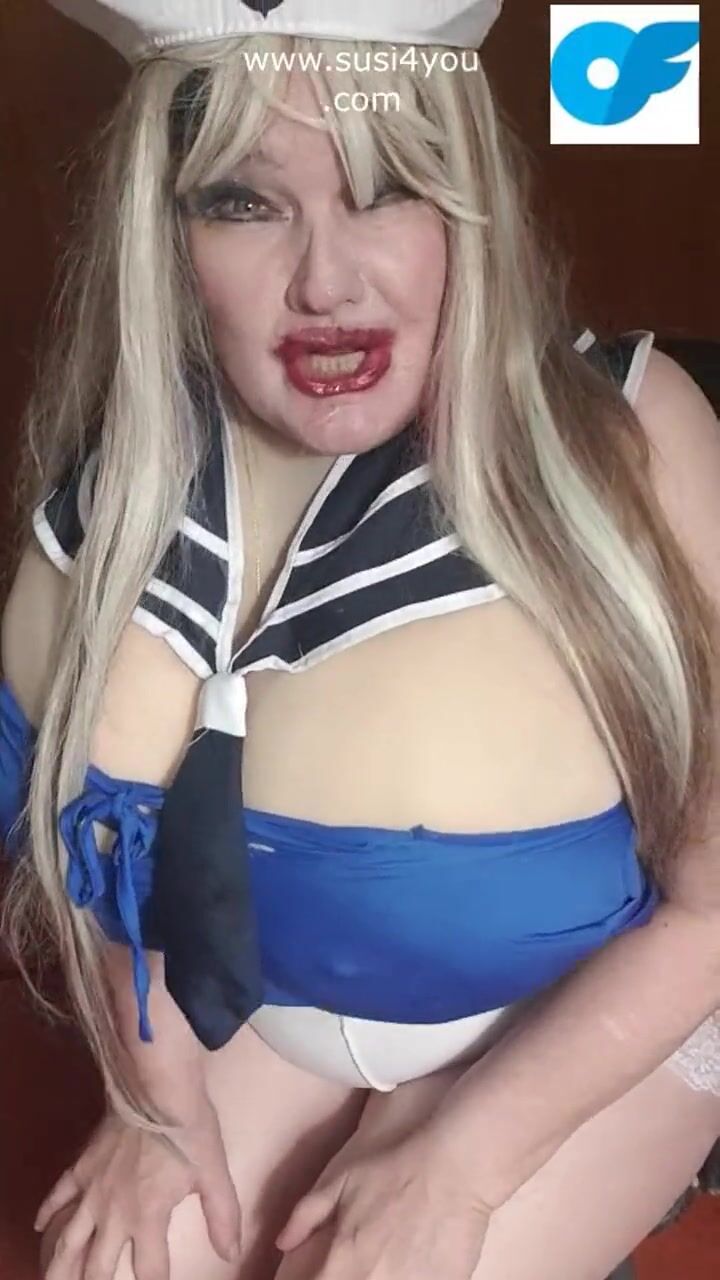Susi is wearing a sailor outfit sucking giving a toy blowjob