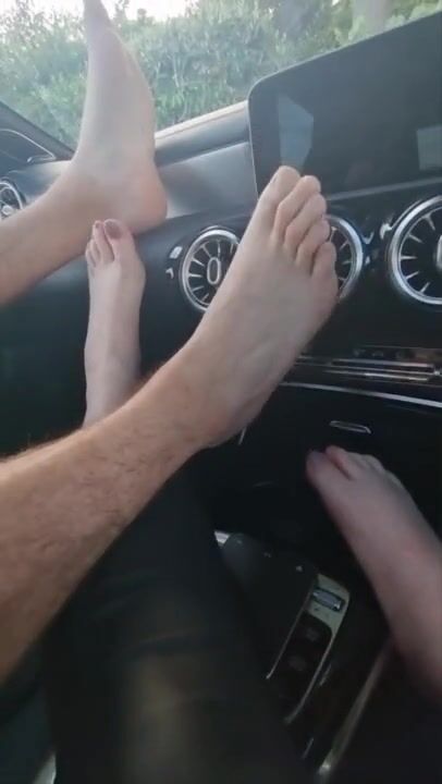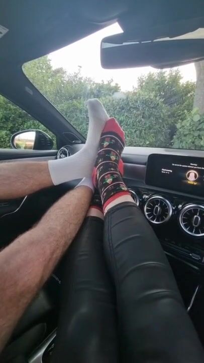 Sweaty socks and feet on my boyfriends Mercedes dashboard (preview)