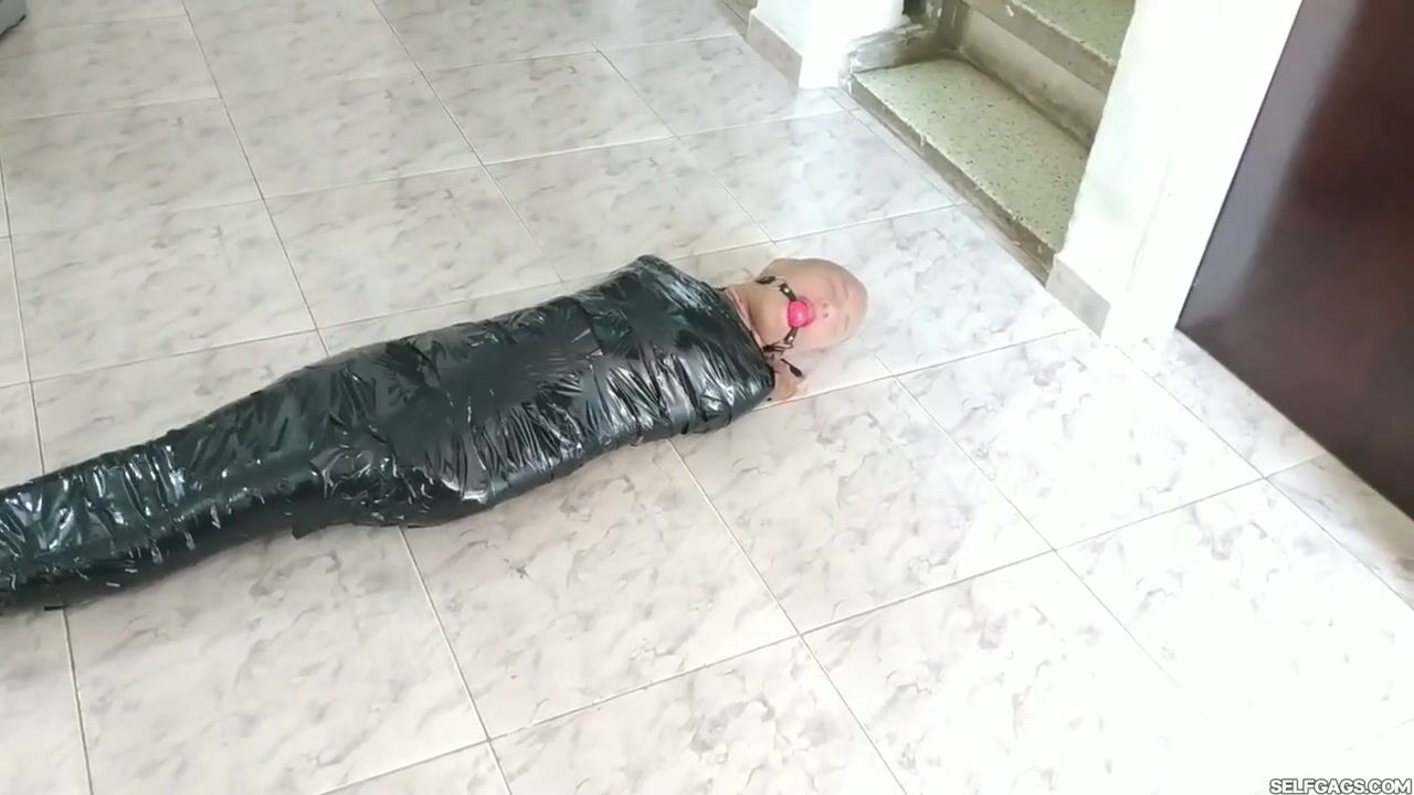 Tape Mummified Girl Pantyhose Hooded And Ball Gagged