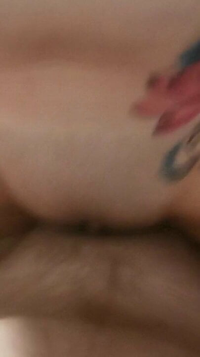 Schoolgirl tranny fucks classmate with tattooed dick! ANAL gapes, Cum covered ass