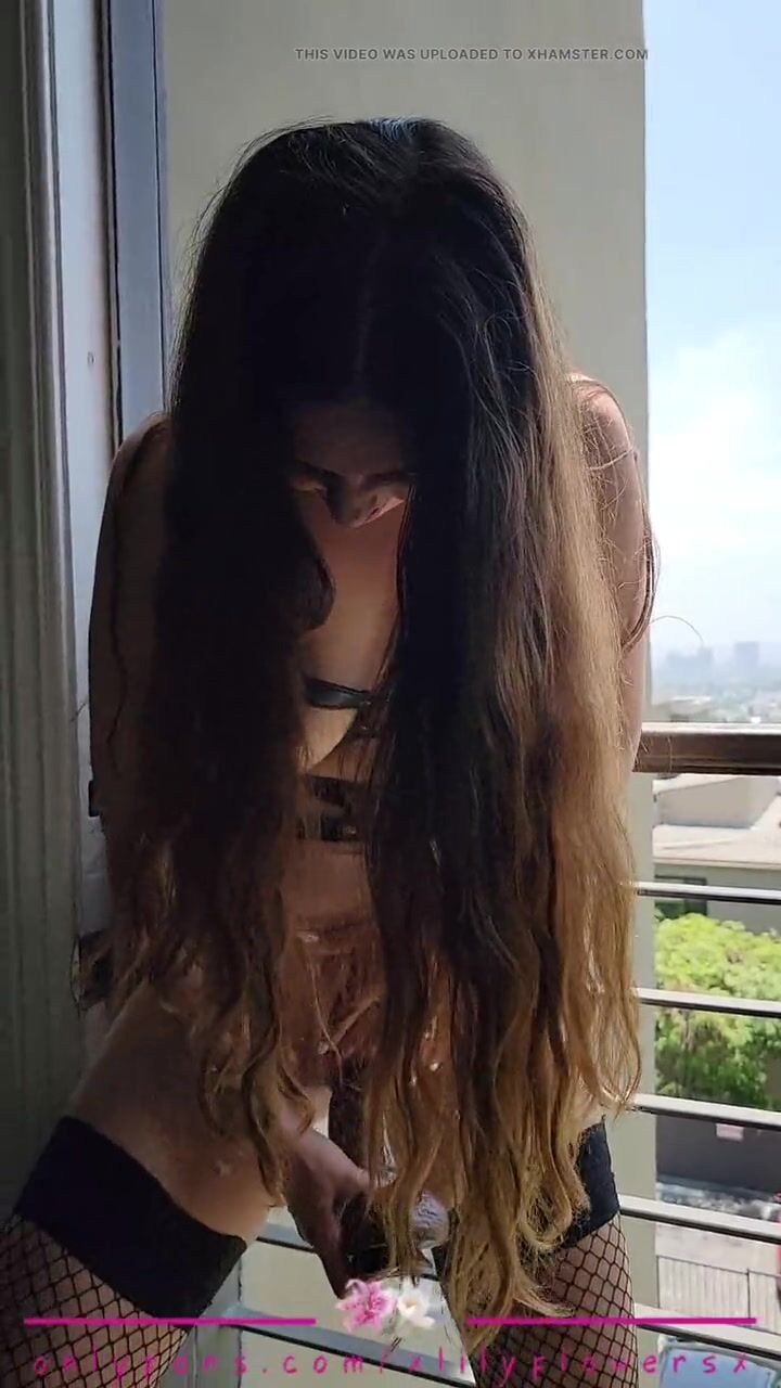 Tattooed Naughty Amateur Solo MILF Fucks and Sucks BBC Dildo on Hotel Balcony