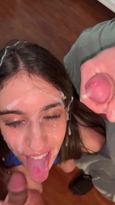 Teen Girl Gets a MONSTER Double Facial from Boyfriend and Married Dad next Door