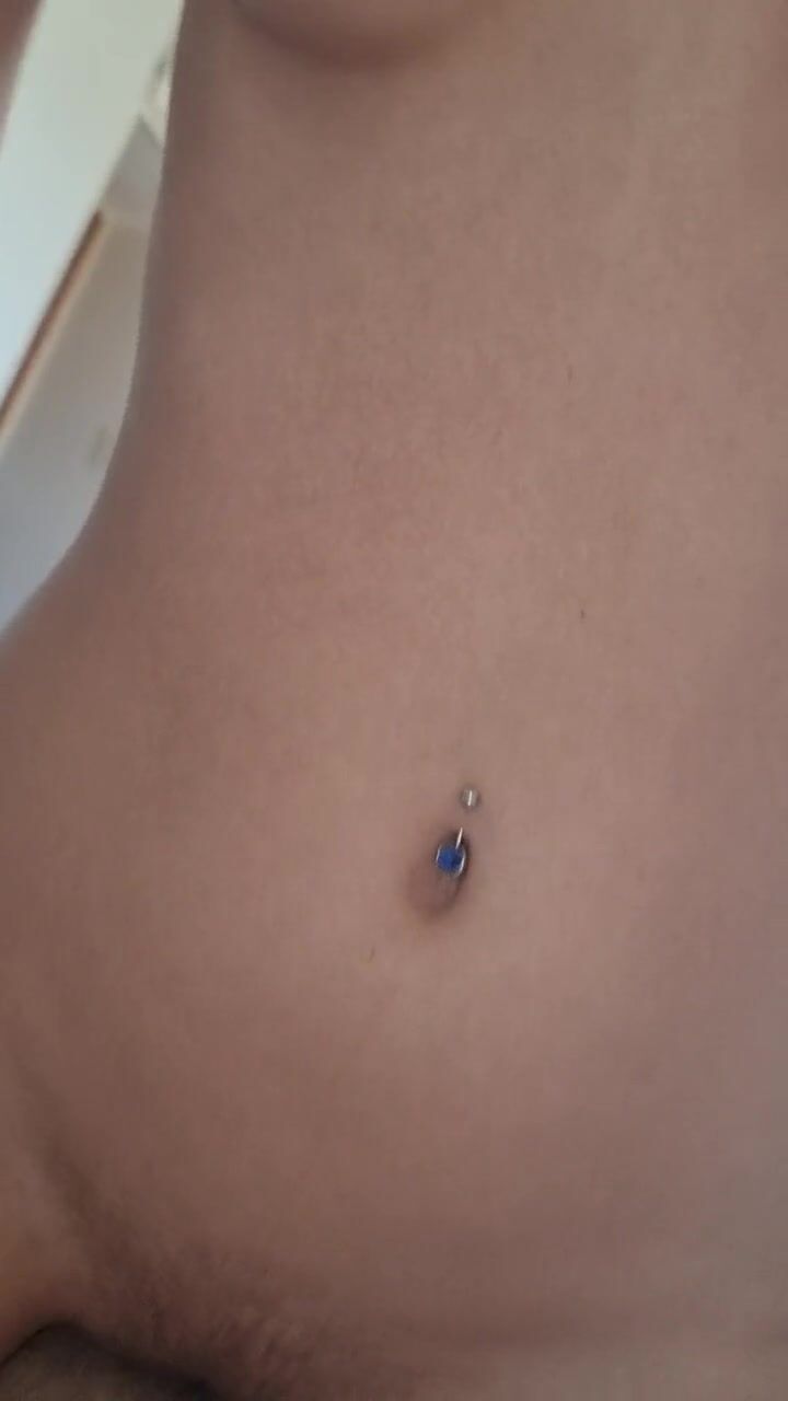 Teen with belly ring rides my dick raw