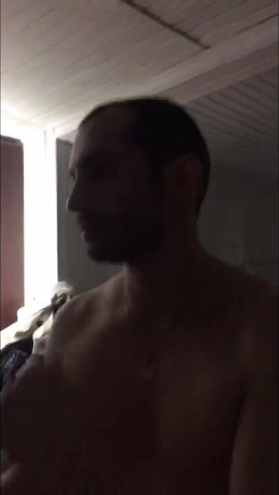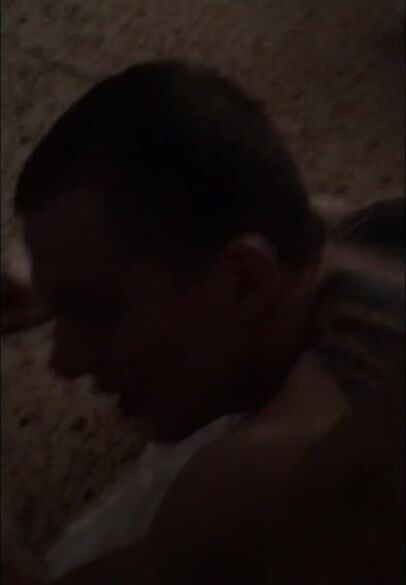 Three guys fuck on an abandoned house at night