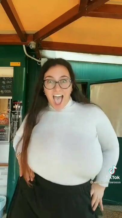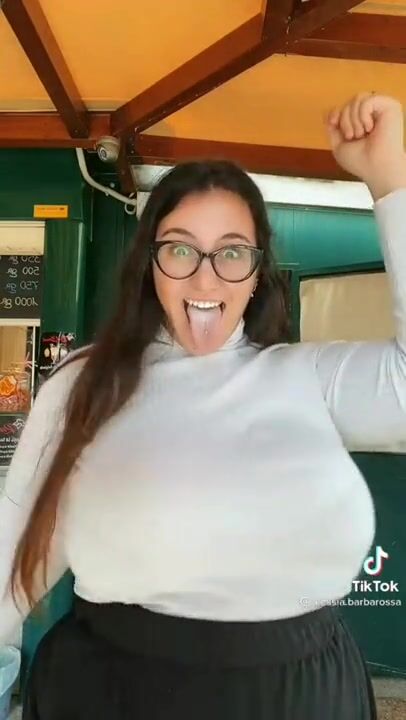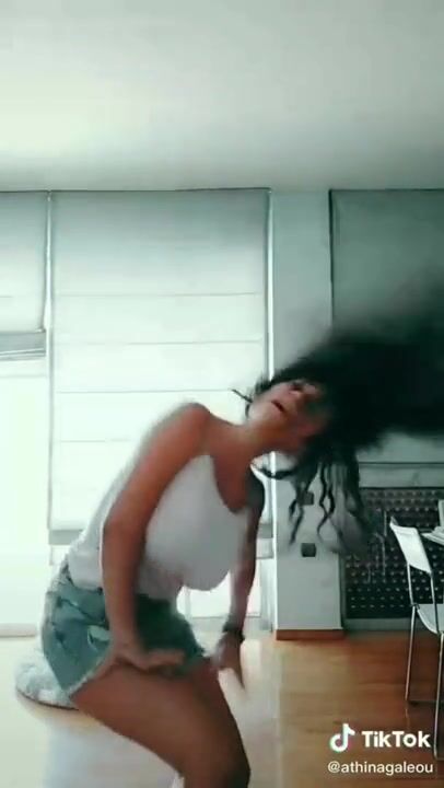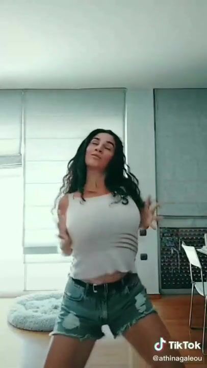 Spill out natural boobs from short student uniform top, wedgie thong leotard, hair...