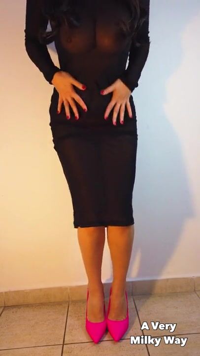 Voluptuous MILF Jane From the UK Looks Delicious in a Black Latex Dress and Tights