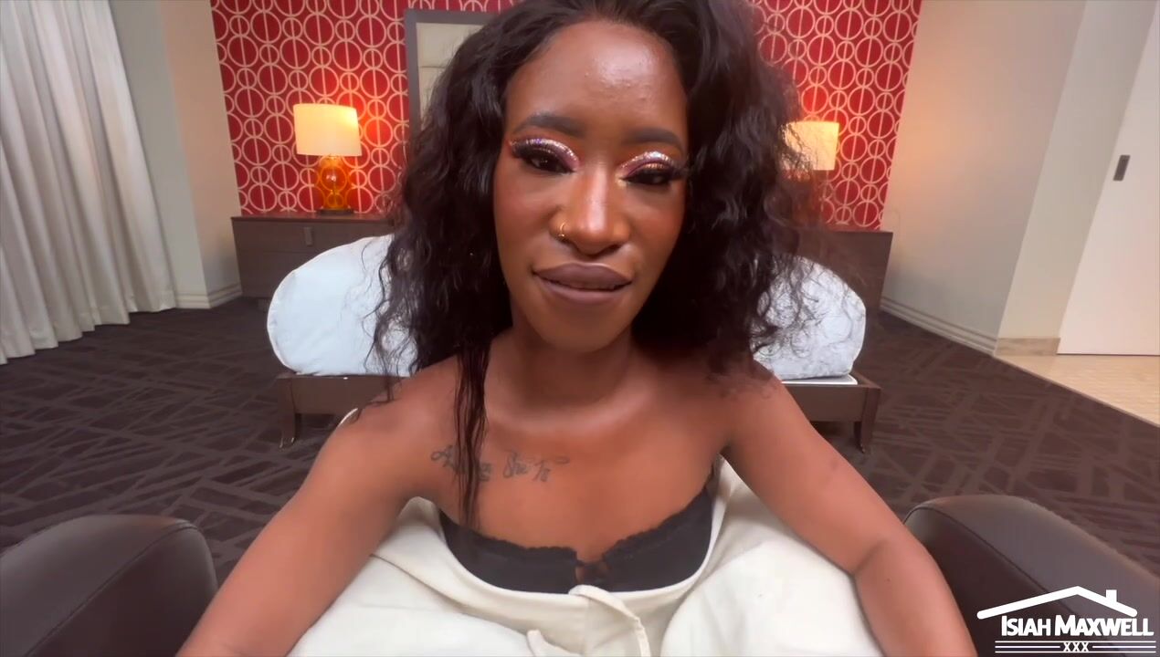 Tiny Ebony Woman Climbs on Isiah Maxwell's Massive BBC