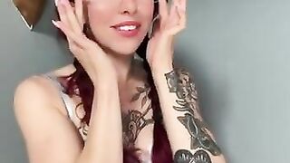 Dutch girl with needle pierced tits sucks cock and gets his cum in her eye