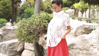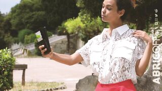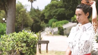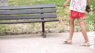 Un voyeur la regarde ouvrir son chemisier sans soutif sur un banc: Audalove83 Asiancat83