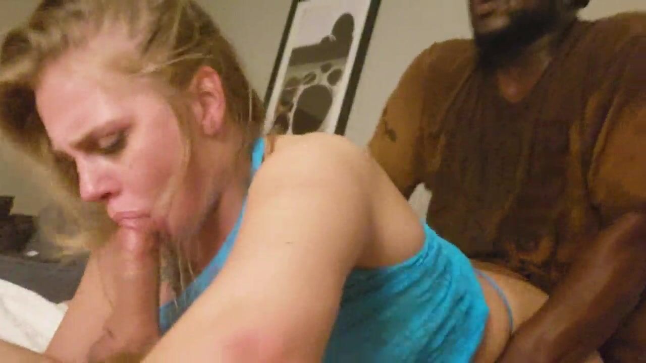 Wifes sucks my cock while bbc fucks her