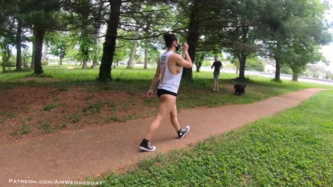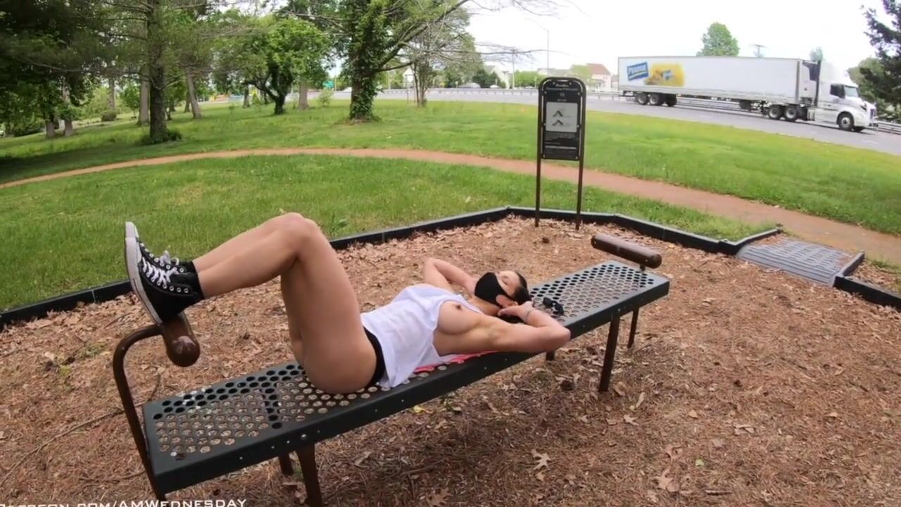 Working out at the park with lots of side boob!