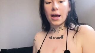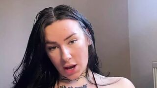 Dutch girl with needle pierced tits sucks cock and gets his cum in her eye