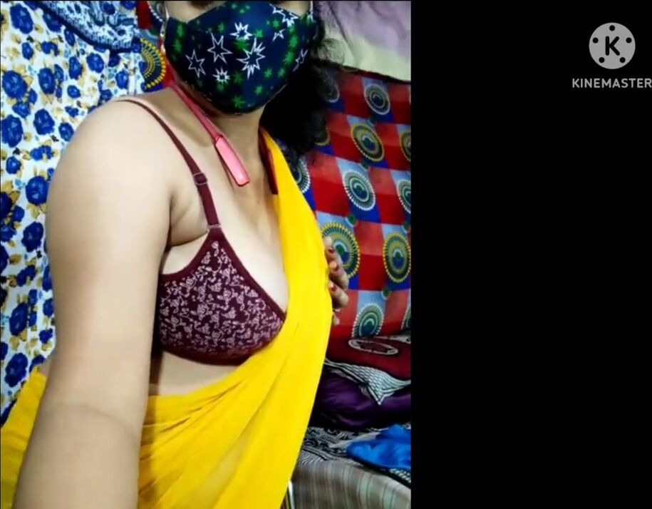 Yellow colour saree indian sexy housewife